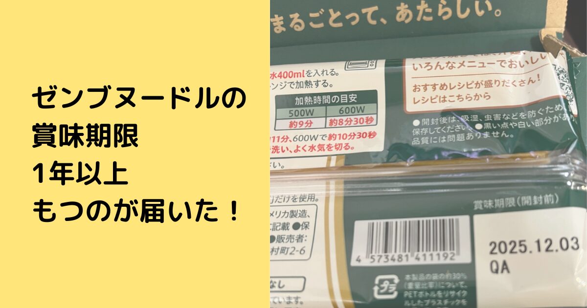 ゼンブヌードルは1年以上賞味期限があるものが届いた