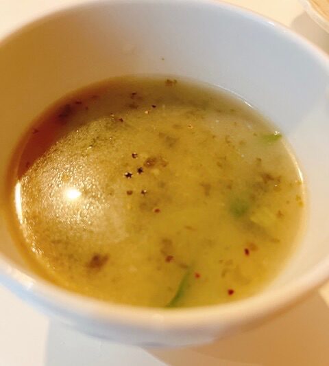 鶏ガラスープで味付けして海苔とちょっとネギ