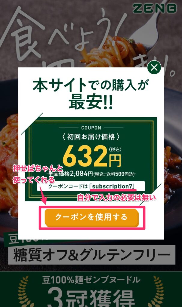 ゼンブヌードルは、公式サイトの最初のページでクーポンがゲットできて、