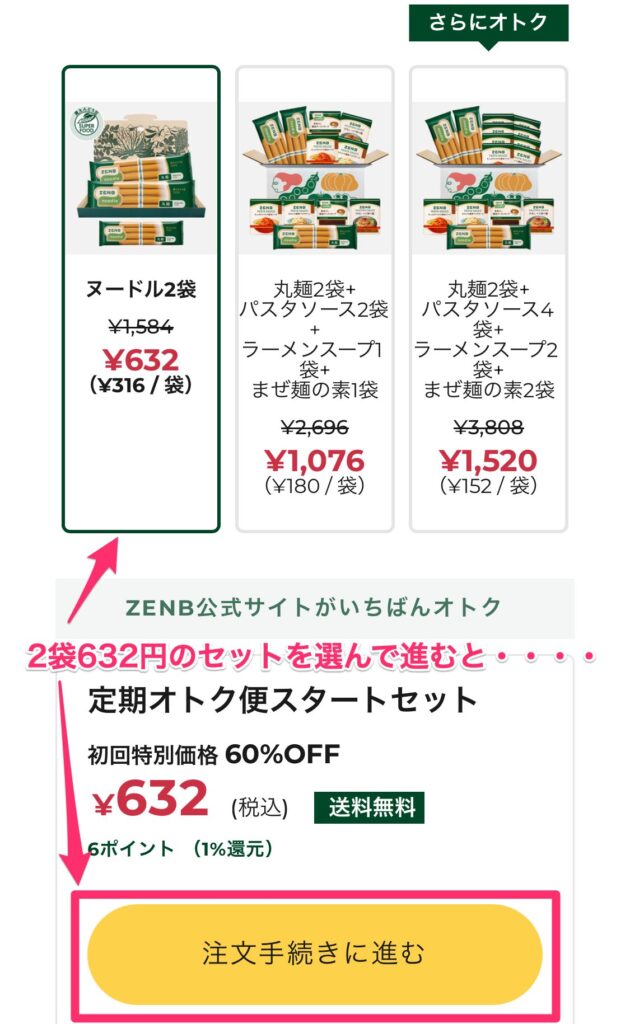 最初の画面で2袋632円のクーポンが表示されていたので、