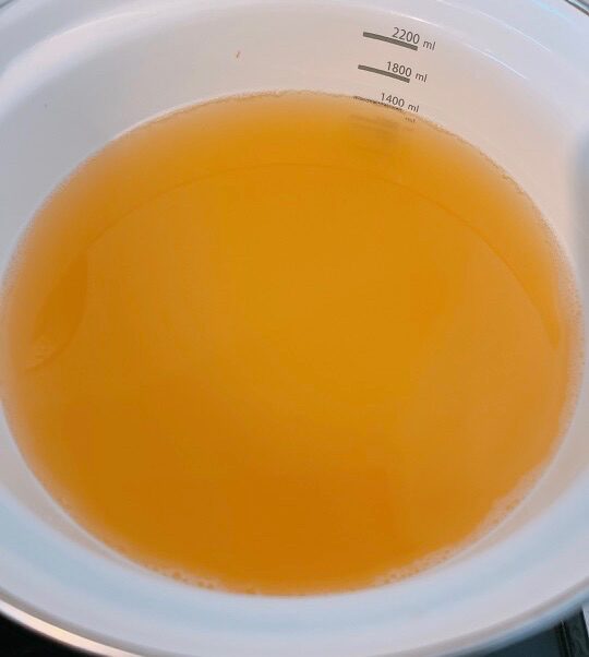 茹で汁をみると、こんな感じで結構色も変わってとろっとしてる感じです。