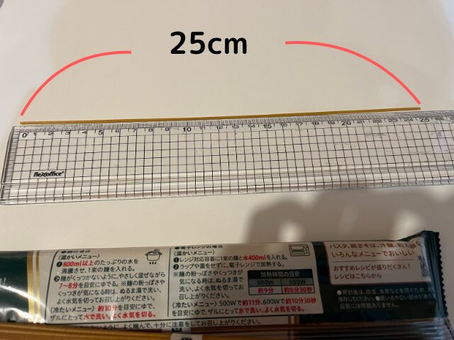 測ってみた所、全長25cmと、一般的なパスタと全く同じサイズでした。