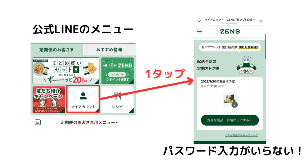 そんなログインも、ゼンブヌードルの公式LINEからであれば、パスワード無しでできるようになります。
