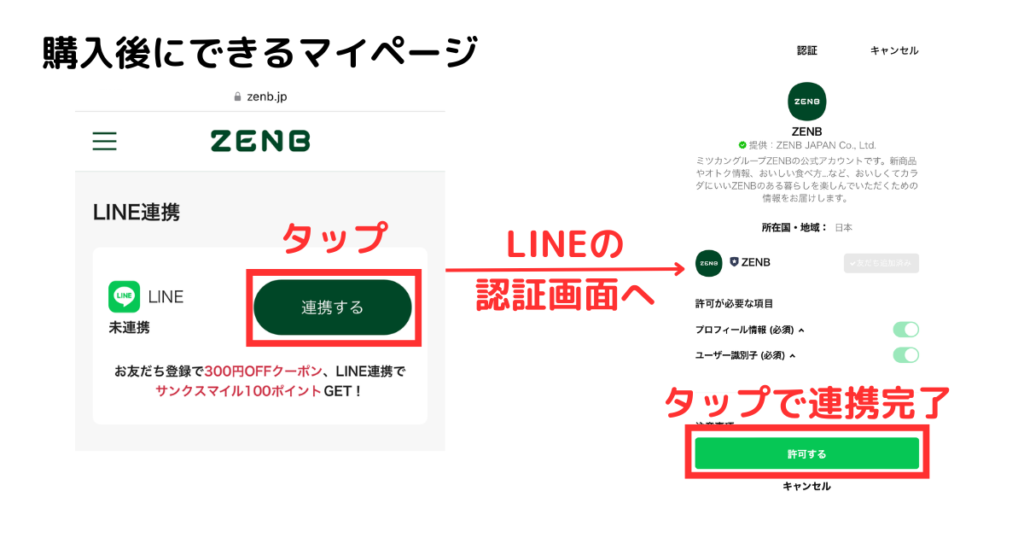 まずは公式サイトから買うと、マイページができるので、そこからLINEを連携しましょう。