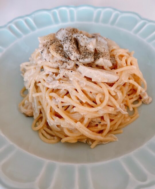 きのこと牛乳だけでタンパク質たっぷりなクリーム風パスタに