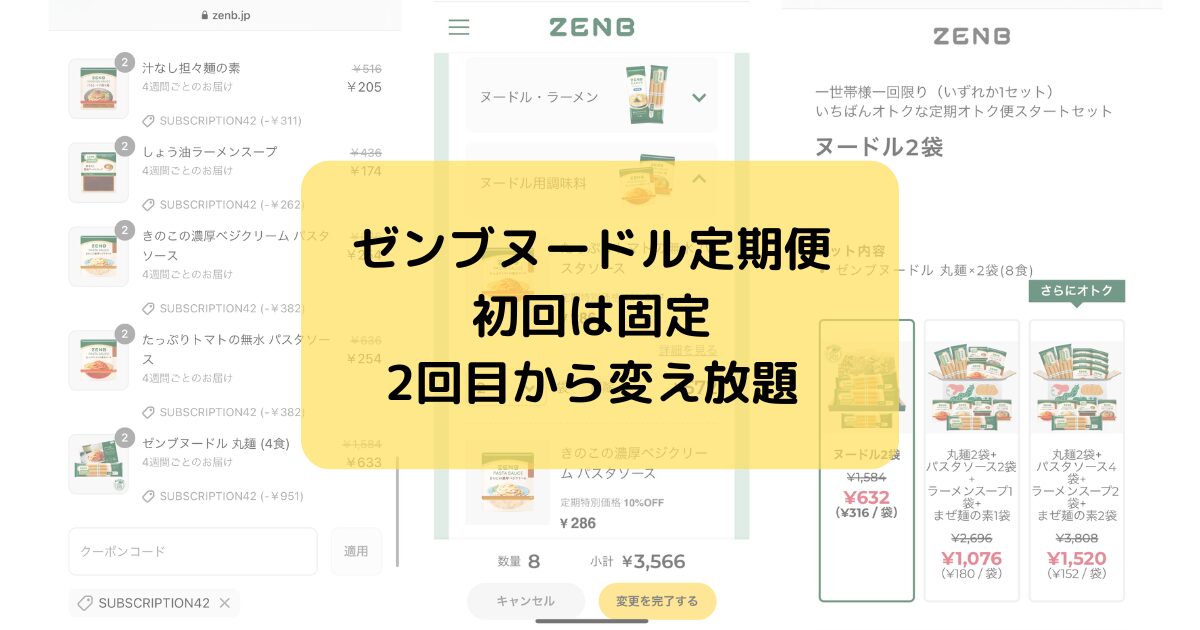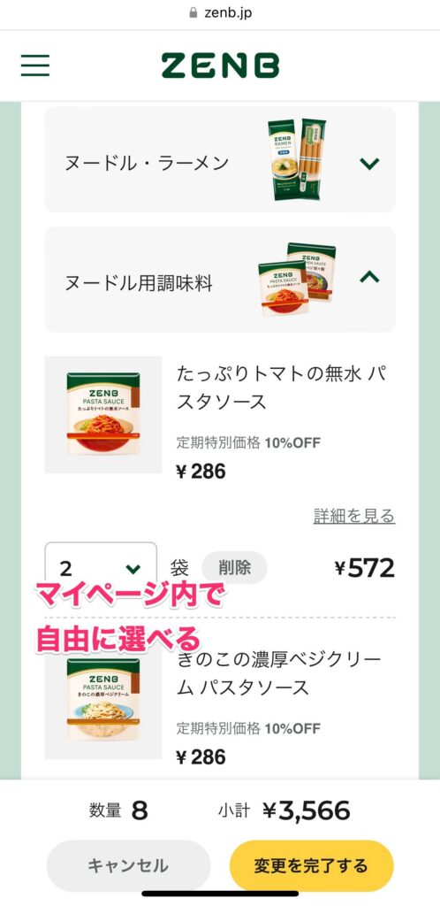 ゼンブヌードル、定期便初回のお得なセット、内容変えたりできるのかな?