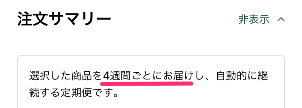また、配送間隔は、最初は4週間で固定です。