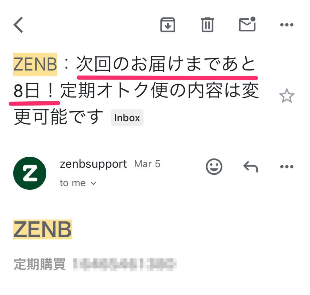 次回お届け日の8日前にメールが来る