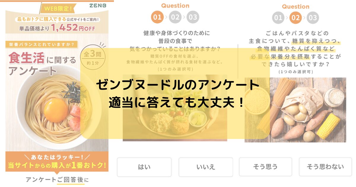 アンケートが出てきたら、どんな回答をしても問題なくゼンブヌードルは安く買えます。