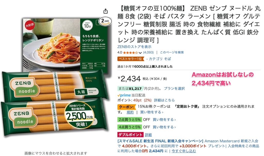 しかも、Amazonや楽天では、ゼンブヌードル公式の定期便の2回目からの価格よりも高いんです。