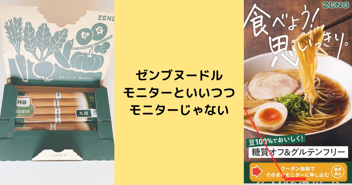 ゼンブヌードルを買おうかなと思って見てたら、モニターという言葉が出てきて、
